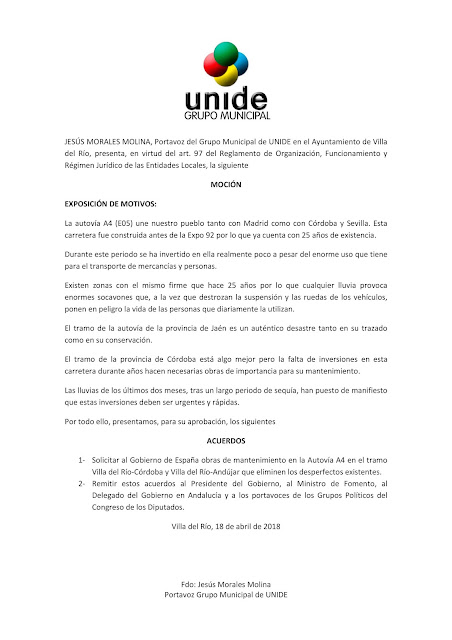 MOLINA, Portavoz del Grupo Municipal de UNIDE en el Ayuntamiento de Villa del